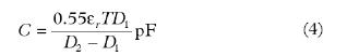 公式(4)示出了如何計算通孔(參見(jiàn)圖8)引起的寄生電容值。