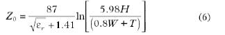 公式(6)可以用于計算一塊FR4板的特征阻抗。