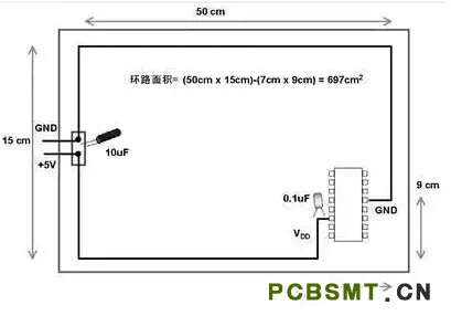 電路板中電子元器件和線(xiàn)路受電磁干擾(EMI)的可能性降低了679/12.8倍或約54倍