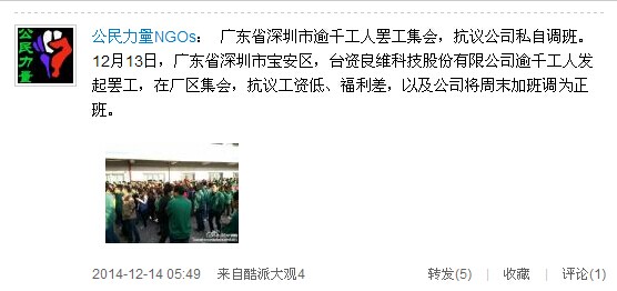 來(lái)源:深圳一臺資科技廠(chǎng)千名員工罷工 抗議克扣工資