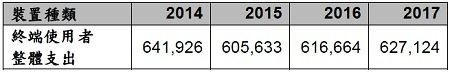 2014~2017年全球終端使用者設備支出(單位:百萬(wàn)美元)