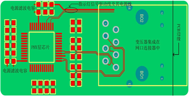 1. 圖 2網(wǎng)口變壓器沒(méi)有集成在網(wǎng)口連接器里的參考電路PCB布局、布線(xiàn)圖,下面就以圖 2介紹以太網(wǎng)電路的布局、布線(xiàn)需注意的要點(diǎn)。