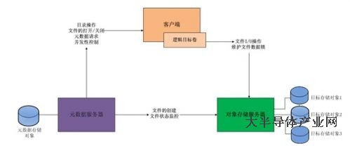 元數據服務(wù)器、對象存儲服務(wù)器和客戶(hù)端可以分別運行于獨立的操作系統中,也可以運行于一個(gè)操作系統內部。優(yōu)的解決方案是元數據服務(wù)器位于一個(gè)單獨的服務(wù)器中,對一個(gè)元數據存儲對象提供服務(wù),單獨的對象存儲服務(wù)器為多個(gè)對象存儲對象提供服務(wù),客戶(hù)端也位于單獨的服務(wù)器。其結構如下圖所示,圖中為一個(gè)元數據服務(wù)器,一個(gè)對象存儲服務(wù)器,和一個(gè)客戶(hù)端的示意圖,元數據服務(wù)器服務(wù)于一個(gè)元數據存儲對象,對象存儲服務(wù)器服務(wù)于三個(gè)目標存儲對象。